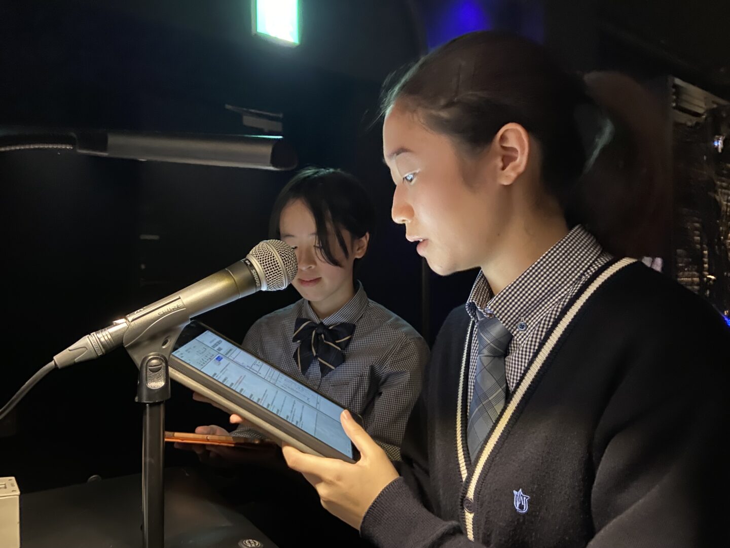 影アナ(前日リハの様子) 舞台上には登場しませんが、開会前からの諸連絡や閉会後の案内など重要な役割です。